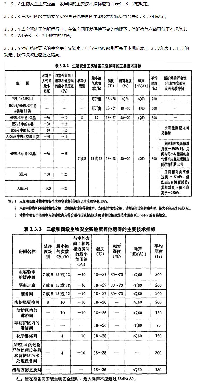 根据生物安全实验室建筑技术规范要求BSL-2实验室照度不低于300Lux,噪声不超过60dB6。采取水电独立等措施后可减少实验室环境噪音。生物安全实验室噪音标准可参阅文章尾部表格。
